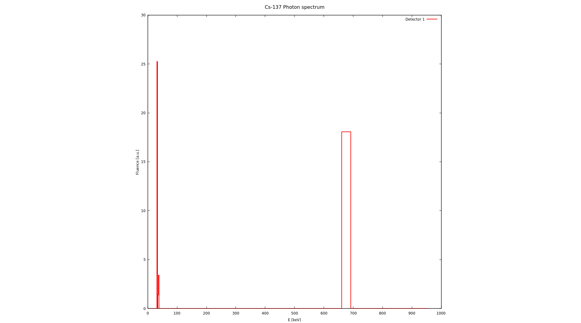 If instead I simulate Ba-137m directly (by setting Z=56, A=137 and Isom.: -1 in HI-PROPE), I still obtain a correct value for the dose rate and photon fluence, in agreement with expectations (half of the Cs-137 case).