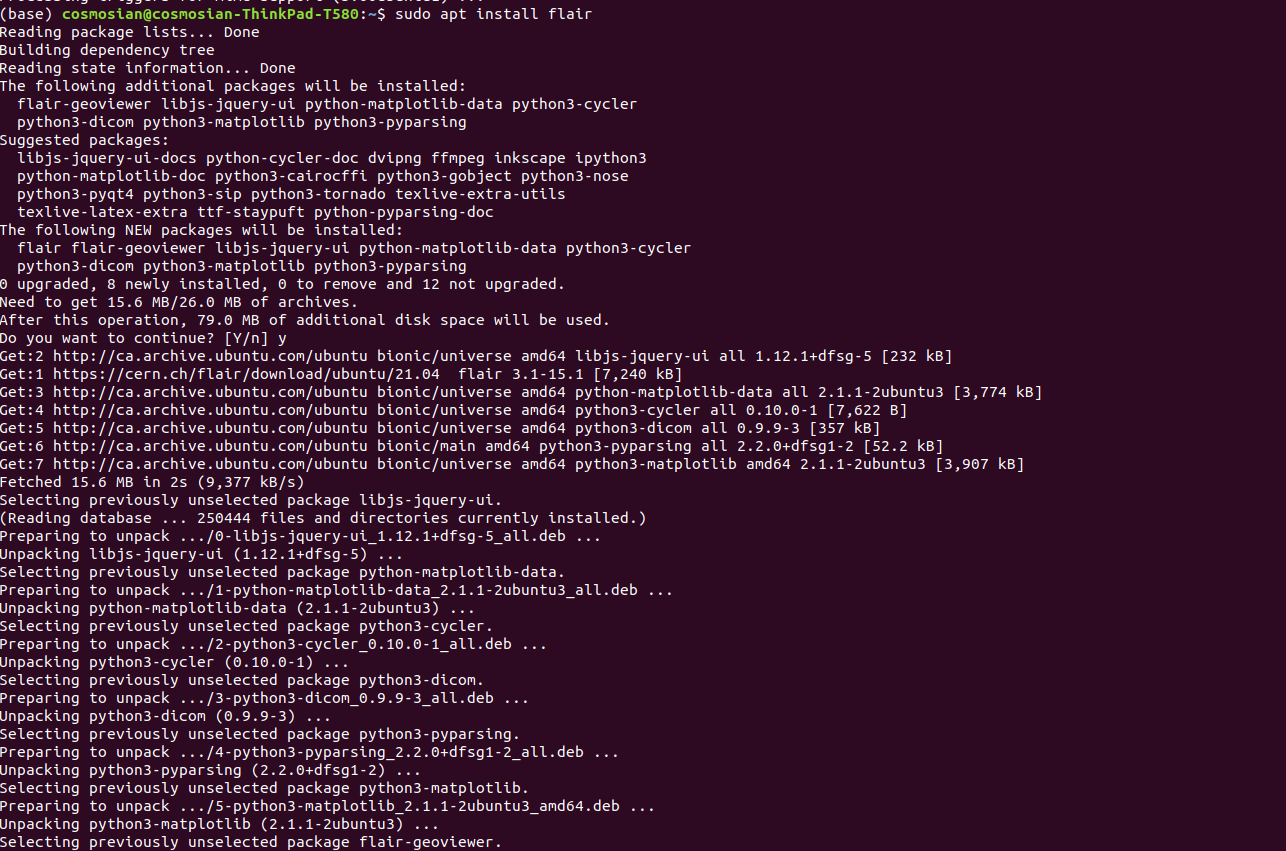 I followed the step-by-step instructions under the title “UBUNTU systems” in which flair and all its dependencies are installed. Here is the terminal output: