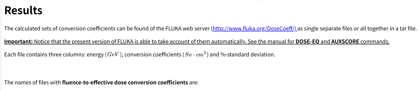 I hope to receive assistance from experts, scholars, or official personnel! I previously read a FLUKA article titled “Overview of Fluence-to-Effective Dose and Fluence-to-Ambient Dose Equivalent Conversion Coefficients for High Energy Radiation Calculated Using the FLUKA Code.” The article mentioned that the website “http://www.fluka.org/DoseCoeff/” provides data files related to Fluence-to-Ambient Dose, but this URL is now invalid. Is there any way to find these Fluence-to-Ambient Dose data files?