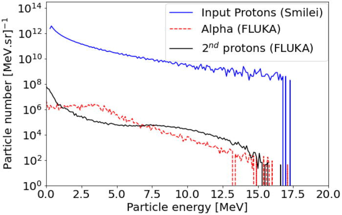 I need a plot similar to the above image. both 2nd protons and alpha particles. Input protons i am getting from EPOCH. Basically i need the spectrum of alpha particles and the protons and I also need to measure the angular distribution of the alpha particles (dn/dtheta*dE) (deg/MeV). Which scoring card i should use to get the respective spectrum and the angular distribution ?