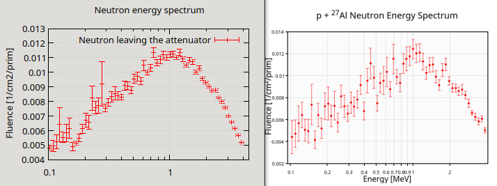 I’m trying to score neutron fluence energy distribution (spectrum) born on 27Al(p, x) reaction on aluminum attenuator of a cyclotron target assembly.