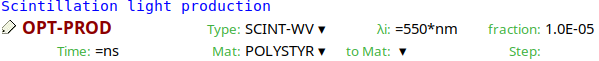 Thank you for your reply. Now I have an inp file that describes muons striking the EJ-200 (a box-shaped scintillator), and I want to study the scintillation light it produces. The base material of EJ-200 is Polyvinyltoluene. The properties of the EJ-200 scintillator are described at EJ-200, EJ-204, EJ-208, EJ-212 - Plastic Scintillators - Eljen Technology .