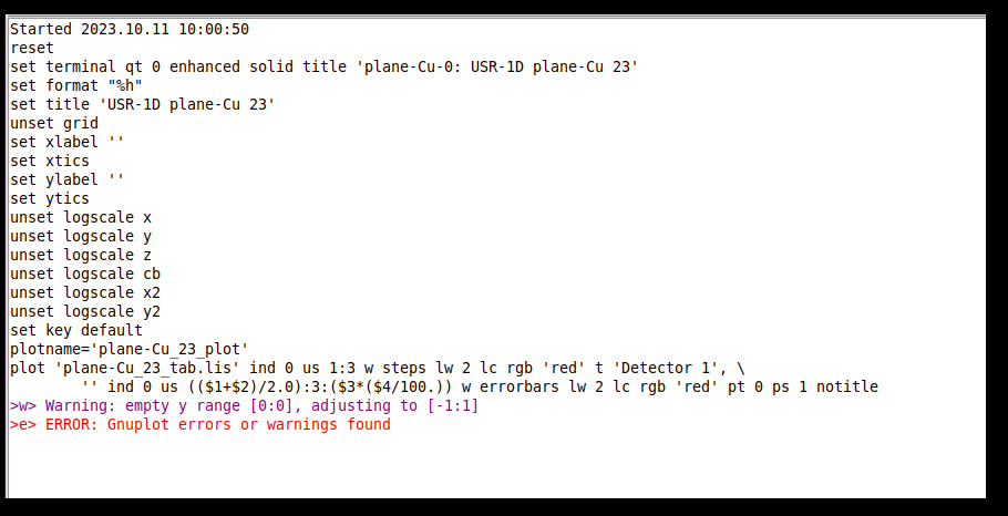 Actually I am using usrtrack card which calculates particle energy spectrum in the region defined. I am getting results for photons and electrons but for neutrons and all other particle types it gives the gnu plot error that it has empty y range.